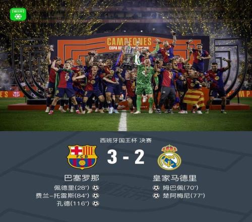 2、2024-2025赛季国王杯决赛,巴萨战胜皇马夺冠 热度值:3432862