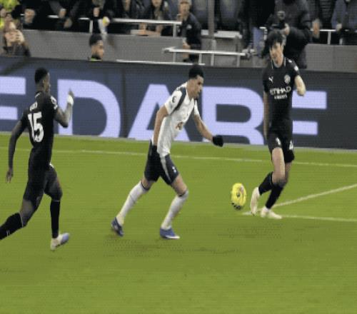 1-1的比分一直持续到了伤停补时阶段,第97分钟,门迪禁区内左脚将球踢走,右脚直接踢在了迪亚斯的肚子上,裁判判罚点球。